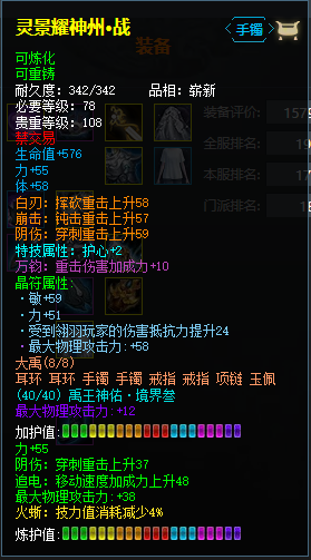 各位少侠晚上好呀~ 一年一度的大禹盛典活动 随丰收节在上周正式开幕啦! 这也是培养大禹首饰的绝佳时机 “标配”的大禹之恩声望雨 将在每晚20点至21点降落大荒 只需在线就能轻松带走3000点声望 不仅如此,大禹手镯洗炼节 也同步开启 活动期间,完成指定任务 就能轻松带走各种相关养成道具 还有限时返利和洗炼周卡 助力各位少侠洗炼完美属性! 还在努力培养大禹手镯的少侠 千万不要错过啦~ 那么接下来,就一起品鉴一番 看看大家都培养了怎样的手镯吧~ 今日封面图源:棠狸 原版壁纸可于文末自取 翎羽 灵景耀神州·战 装备主人:暮时流云 这位走大攻重击流的翎羽少侠 在培养【灵景耀神州·战】时 对其攻击端的属性更为侧重 力、大攻的大量堆叠 为他奠定不俗的物理攻击力 阴伤与万钧相辅相成 加之敏对命中的提升 令少侠射出的每一箭都能直击要害 而炼化中的追电属性 使其在速度上的优势进一步凸显 在战场上来去如风,难以捕捉 在防御上亦是可圈可点 生命和体增强其在战场的生存能力 激活特技护心,能有效抵抗 来自敌方的会心一击伤害 晶符中提升对同门伤害的抵抗力 即便与同职业的选手对抗 也能更占优势 太虚 皓天舒白日·斗 装备主人:不许人间见白头 这位太虚少侠 选择了更适合会心流的斗系列手镯 “标配”的生命值是身板的基础 念属性在增加法防的同时 更提高施法保护力和会心防护力 与缩短吟唱时间的疾语搭配 有助于提高其施法的连续性 在攻击属性方面 大量魂、大法带来的提升十分显著 在此基础上,敏提高会心之余 进一步增强技能的命中能力 在诛心和附伤的加持下 少侠在战场掀起的每一阵风 都势不可挡,威力不容小觑! 幽篁 皓天舒白日·斗 装备主人:丷雲阳 这位幽篁少侠的【皓天舒白日·斗】 过百的魂、大法的堆叠 使其具备不俗的法术攻击力 而当前生效的神祝 也令其攻击力更上一层楼 会心、诛心二者相得益彰 再辅以附元增伤、疾语提速 少侠施展的每一次击都迅猛无比 令敌人毫无招架之力 防御属性方面也有所兼顾 基础的生命搭配念、体增强双防 水风毒防护特技傍身 在战场上定能站稳脚跟,打出风采 [编辑:月光下完美]