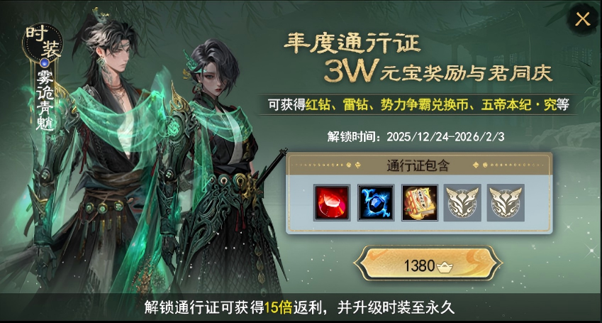 天下3 妙品时装人人有,解锁通行证享3W元宝奖励,红钻带回家!2026势力争霸报名今日开