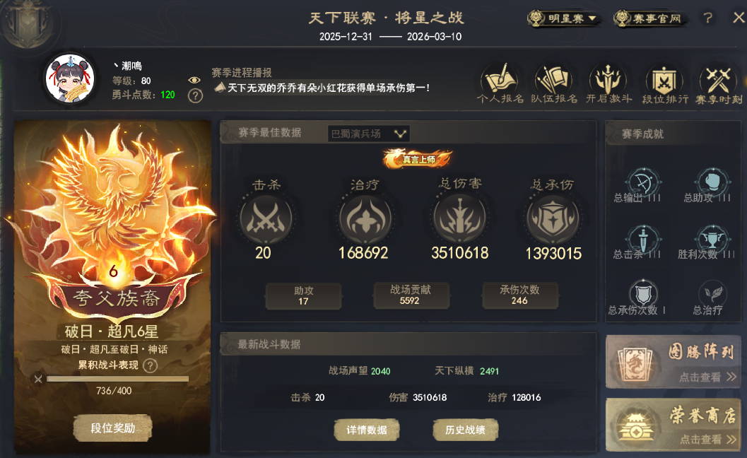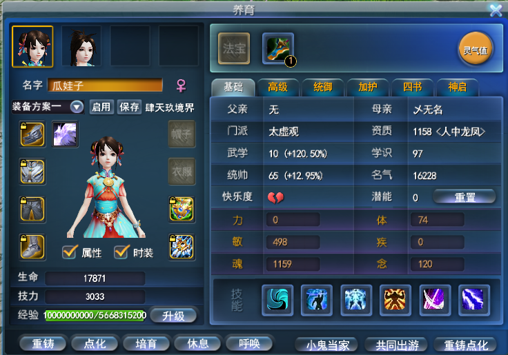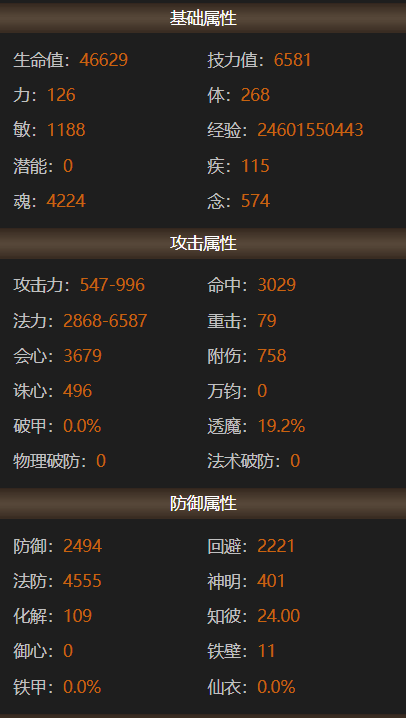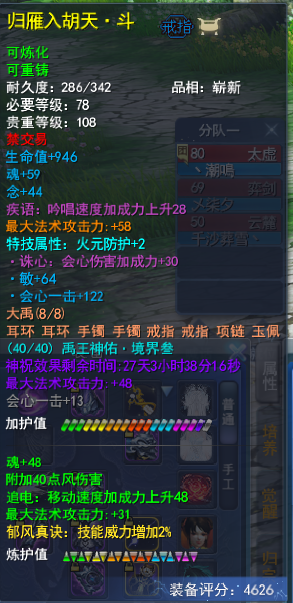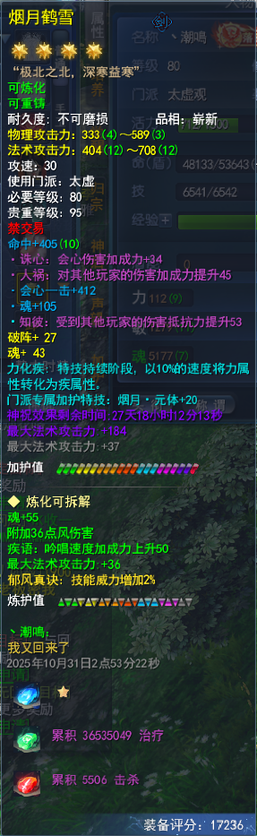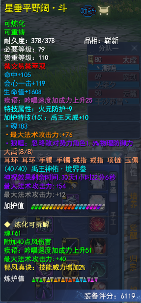 行走大荒的你 是否有独到的账号打造心得? 是否有未曾分享的独门攻略? 即日起无论是接受小天天的采访分享心得 还是投稿分享你的独门攻略 一经采纳,都能收获 【王朝军资·1200】和门派挂件一个! 赶紧联系小天天吧~ 少侠,你是否曾与大荒有个约定呢? 2017年,为备战考研而不得已暂别大荒的【潮鳴】少侠,与大荒许下了一个约定:“今年年底再见,我会回来的。”然而,这一别,就是八年之久,虽然未能如期而至,但他从未忘记这个约定。 去年,生活的紧凑节奏终于有了点闲暇,潮鳴便决定趁此机会履行当年许下的约定,带着年少时的热情重新踏上这片故土。历经一番辗转,他最终选择回到了最初的起点——太虚观。在确定方向后,他在装备的培养上精益求精,不放过任何一条属性,不到半年时间,将大法提到8400,在战场、副本掀起的每一阵风都足以令人生畏! 那么事不宜迟,接下来就一起看看,来自天下无双的【潮鳴】是如何打磨细节,让实力更上一层楼吧~ 8400大法太虚 本期宝鉴 目前游戏内属性: 采访全记录 Q1:少侠是如何入坑的呢~ 其实我入坑的时候年纪尚小,09年的时候我还在念小学,然后有一次看到了家里有亲戚在玩天下,看了一眼就被这样的国风游戏吸引,然后就火速入坑了。我记得我选的第一个门派就是太虚,当时觉得能召唤各种仙兽,很符合我心中对修仙之人的想象。09年的时候我玩到59级,10年之后忙于学业没怎么上线,直到上大学之后才继续玩。 15年回归最早的时候也是玩的太虚,16年换了个魍魉,到了17年因为要备战考研所以也a了。虽然忙于应对现实生活的各种挑战,但天下在我心里一直有个位置。直到去年我算真正有比较稳定的闲暇时间,所以我正式回归了。当然,其中还有一个重要原因,就是想要履行当年和大荒的约定。 天下,我回来了。 Q2:为什么会选择这个号进行改造呢? 我去年刚回来的时候其实玩的是天机,也是想尝试一下其他门派,感觉玩得不太顺手就换了个毒医。毒医我也改造得很不错,但是还是不太习惯,所以我一直在等一个合适的太虚。 现在这个太虚是当时在直播间看到的,有观众拿这个太虚问价格,我只看了一下就觉得这个号值得我拿下。我上个号是大法重击毒医,伤害虽然高但是不是很稳定,因此在太虚的选择上,我决定改变一下流派,选择能打出高爆发性伤害的大法会心流。但是会心太虚会有一个问题,就是战场套的人祸和诛心点位是冲突的,当时这个号在满15人祸(战场套激活全人祸+太初武器42人祸以上)的前提下,还有600的诛心,并且大法和会心的属性都比较不错,一下就让我心动了。我当时就找朋友帮忙去联系下号主,谈好价格后,这个号就成为了我的天选太虚。 Q3:可以分享一下改号的思路和目标吗? 当时拿到这个号的时候,我其实在心里是把ta当做自己最后一个号来改,可以说非常用心。当时游戏里是7600大法,3700会心以及28的透魔。我给自己定下的目标是8500大法和4000会心,不过现在来看这个目标定得好像小了,哈哈~ 毕竟这个角色到手时属性就相当不错,所以想要提升就只能从更细节的地方入手,整体的思路就是逐步提升各个部位属性的数值,尽量做到精益求精,不浪费每一点数值。 Q4:接下来就请少侠分享一下改号的过程吧~ 炼化培养 第一步先从炼化入手。因为太虚是法系职业,这号原本的炼化有附元、附水、附火,我的目标是全部改成魂、附风、追电/疾语、大法。太虚本身有神速技能的加成,疾语在40%的时候其实就是满疾语了,剩下的属性就可以改成追电,这样战场里也能多一点生存的能力。 然后把五件郁风真诀的技能威力炼化出来,用大年卡和年卡道具以及弱水白嫖的模具全部提满。弱水和定山河两个赛季服的福利给得相当不错,我建议一直开下去,有空的小伙伴也可以去那边通过老服返利多白嫖一些养成道具。 装备培养 武器我上了21钻,战场套有几件的会心数值比较低,没有达到一钻双属性的数值,所以我重新洗了会心条目,高的条目也都在慢慢重新洗高数值。 原本身上的天魄是知彼、大法属性,但是实战之后我感觉26的知彼其实提高不了多少生存能力,所以我准备走极限输出,想拍大法透魔的天魄。到这个阶段基本都是靠细节才能有一点提升,不过我享受的也正是这个提升和培养的过程。 首饰培养 两件大禹手镯我也是重新洗了属性,目前是+13和+12诛心,并且魂、会心、生命的数值都比之前要高。大禹项链原本激活的属性是敏和诛心,我也重新洗了魂和大法。 目前听取同门的经验的话,诛心保障有600以上就可以了,所以在这个前提下,部分溢出的诛心我会替换成魂和大法,进一步提高自己的攻击属性。 孩子培养 孩子方面改动的地方也比较多。首先点出了武学十,加了不少的属性和修为。然后换了四件点化,两件双明慧,两件明慧透魔,关键是我的点化都是魂、敏、附风等这类有用的属性。 项链之前激活的是魂和诛心,现在也被我洗成了魂和大法。孩子身上四件世界套原来是轻焰,其中附火属性对我来说没有用,我就全部转成了混元,混元和轻焰的属性基本上是一样的,只是附伤不同,不过为了进一步提高也是值得去折腾一番。还有就是换了一本天书,目前都是魂大法双会心的属性。 灵兽培养 灵兽我主要改了四个星点,原本的灵化里有四个不是三高或者敏魂数值偏低的。 太虚灵兽的灵化模具就两种选择,一种是白羊座·伤,如果有附